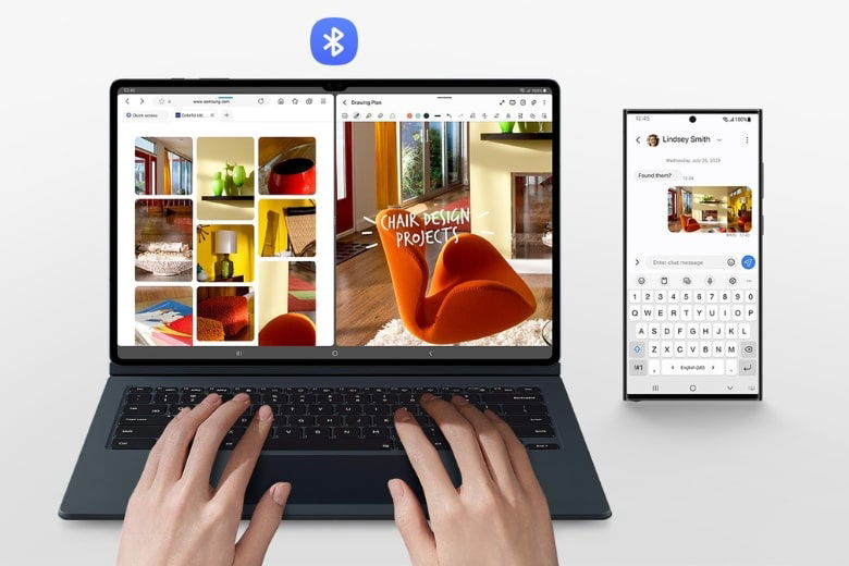 Bạn có thể nhập liệu và điều hướng trên các thiết bị Galaxy khác một cách thuận tiện. Ví dụ, nếu bạn đang soạn thảo email trên Galaxy Tab S9 Ultra nhưng cần tham khảo thông tin từ điện thoại của mình, bạn chỉ cần kết nối bàn phím không dây và bắt đầu nhập liệu trực tiếp trên điện thoại. Điều này cho phép bạn linh hoạt chuyển đổi giữa các thiết bị mà không cần phải điều chỉnh hoặc thích ứng với bàn phím khác nhau.