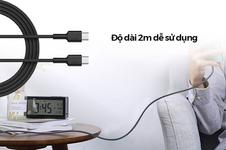 Cáp sạc AUKEY CB-CD19 Type-C to Type-C USB2.0 còn có độ dài 2m giúp người dùng có thể thoải mái sử dụng, cắm sạc ở bất kỳ nơi nào mà không lo lắng chiều dài dây. Đặc biệt bạn có thể vừa nằm, vừa sử dụng thiết bị một cách dễ dàng.